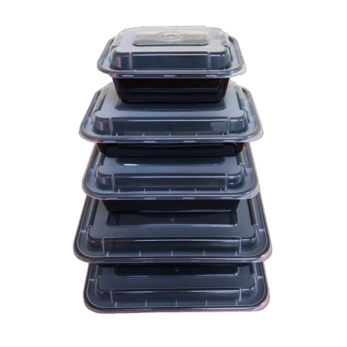 28OZ RECTANGLE CONTAINER, BLACK BASE, CLEAR LID