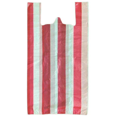 T SHIRT BAG,18X22,RED/WHITE, 15M